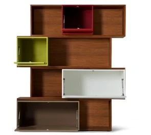 Já declarei meu amor pelos moveis do designer Fernando Jaegger outras vezes. Amo a estante casulo alta. Colorida na medida certa, com classe e bem distribuida. As portas tem abertura telescópoca que permitem acesso total ao interior do móve. Uma graca. Combina com váriados espaços. Como sempre simples, funcional e elegante.